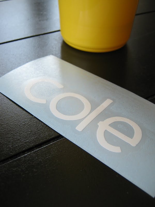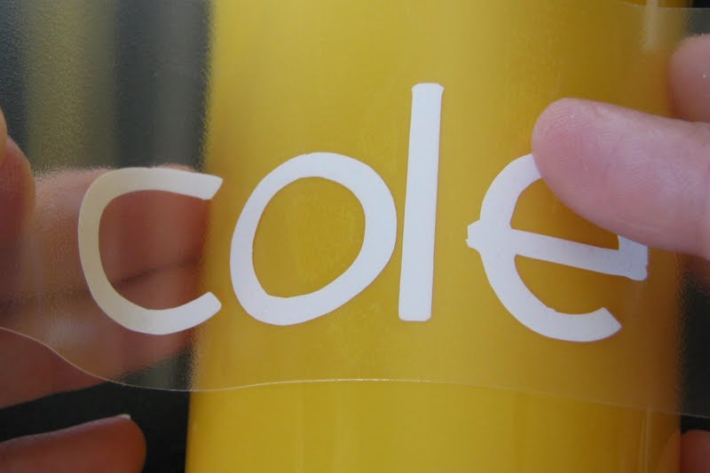 | Then you need to cut your family’s names in cast vinyl. Cast vinyl is cut just like regular vinyl It’s a little thicker, so on my Silhouette I had to adjust the setting to a little thicker than my regular vinyl. {I get my cast vinyl from signwarehouse.com.} Love those guys! I’m sure you can use just about any craft cutter to make these, too. {I also sale labels in my etsy shop.} |