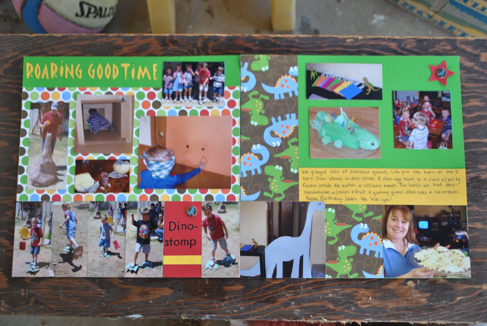 I don’t hardly do 2 page layouts. It seems like my birthday and holiday pages always end up that way though. Well this is my sons 5th birthday party. (yes I’m a little behind….he’ll be 10 next month).
