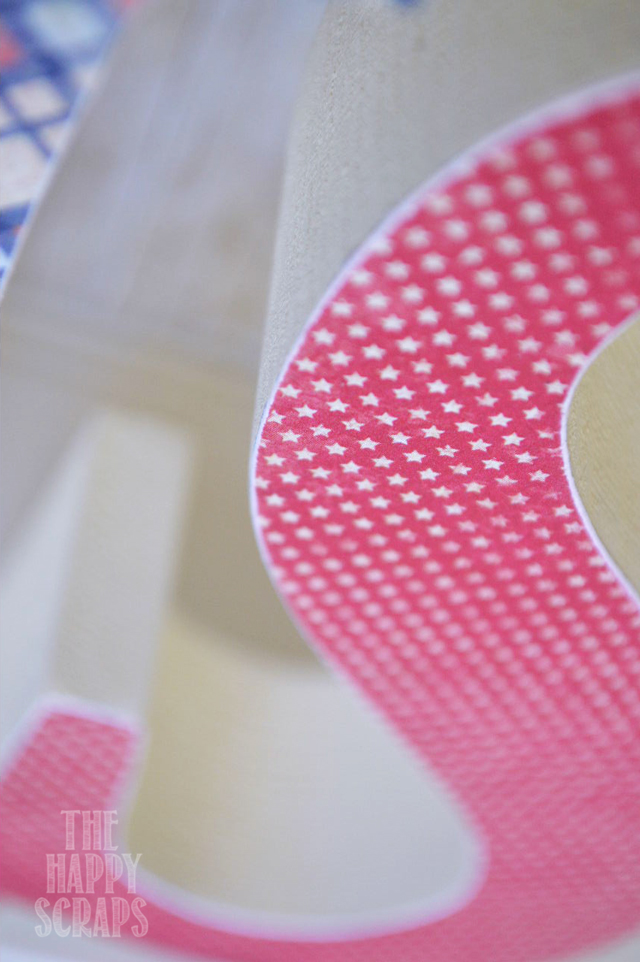 I painted all of the edges and backs of the letters, and then traced them onto the paper. I cut the paper and adhered it to the wood, using wood glue. Then I sanded the edges down on each of the letters.